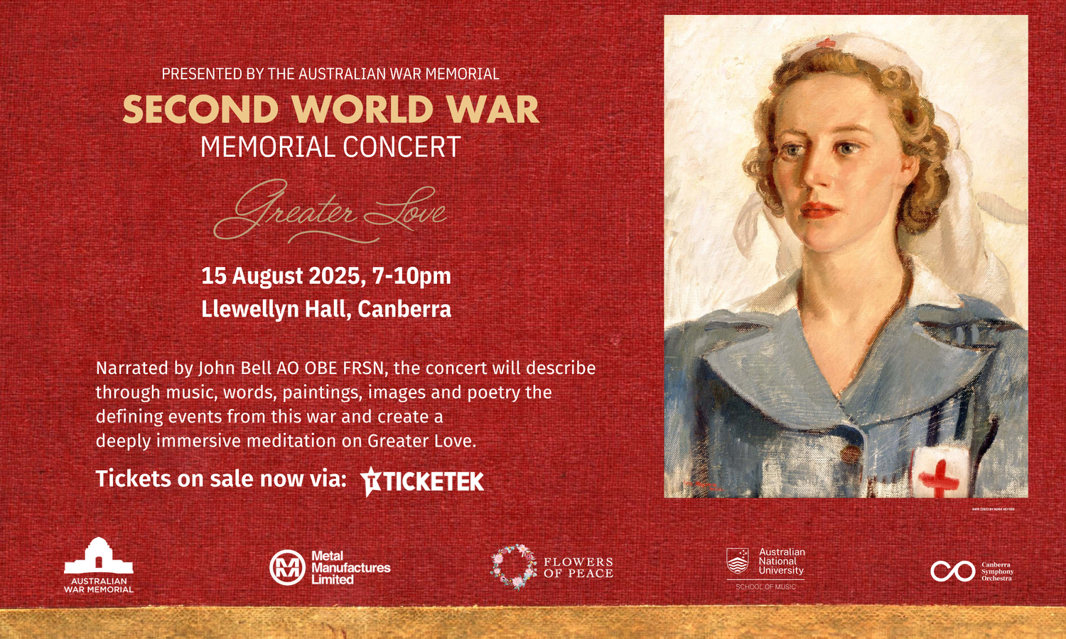 A review from Limelight is available via this link: https://limelight-arts.com.au/reviews/greater-love-second-world-war-memorial-concert-australian-war-memorial-flowers-of-peace/